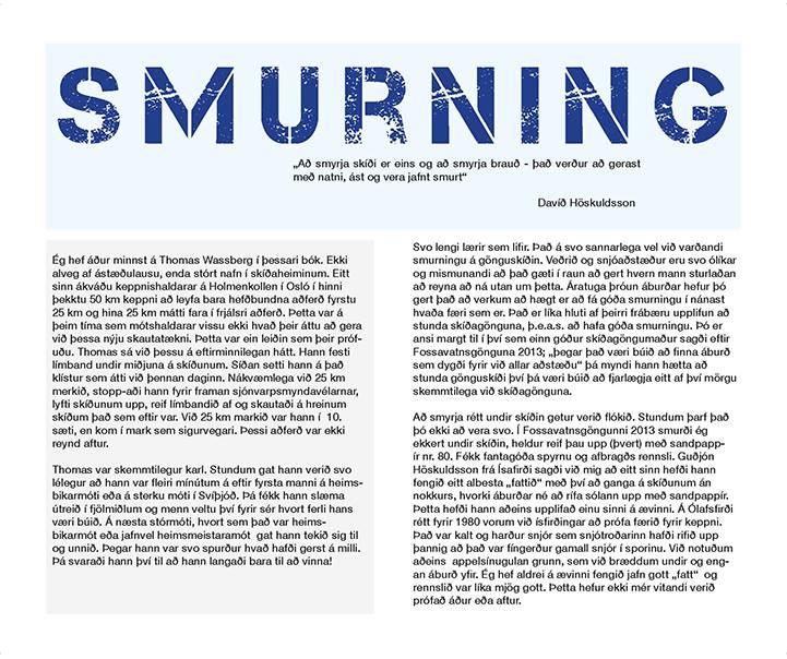 Útgáfuteiti verður haldið í versluninni Íslensku Alparnir næstkomandi þriðjudag 17.desember frá kl. 17:00 – 19:00. Þar mun höfundurinn segja í fáum orðum frá tilurð bókarinnar. Til stóð að hann myndi árita bækur en nú er komið í ljós að bókinni seinkar úr prentun þannig að hún kemst ekki í sölu fyrr en eftir áramót. Höfundur lætur þó ekki deigan síga, hann verður með sýnieintak í Íslensku ölpunum á þriðjudaginn og hægt verður að kaupa gjafabréf. Þannig getur bókin þrátt fyrir allt ratað í jólapakka skíðagöngufólks þótt ekki verði hægt að fletta henni fyrr en eftir fáena daga.